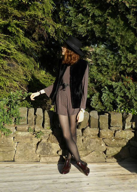 I think everyone should be investing in something with flared sleeves. The feel so great and you can get a proper swish with them. They are some beauts around at the moment, I particularly like this and this. The burgundy playsuit has been an outfit saver many times, instant 70's vibes. I've put it with this matador style hat which feels a little more current than the fedora at the moment for me.
